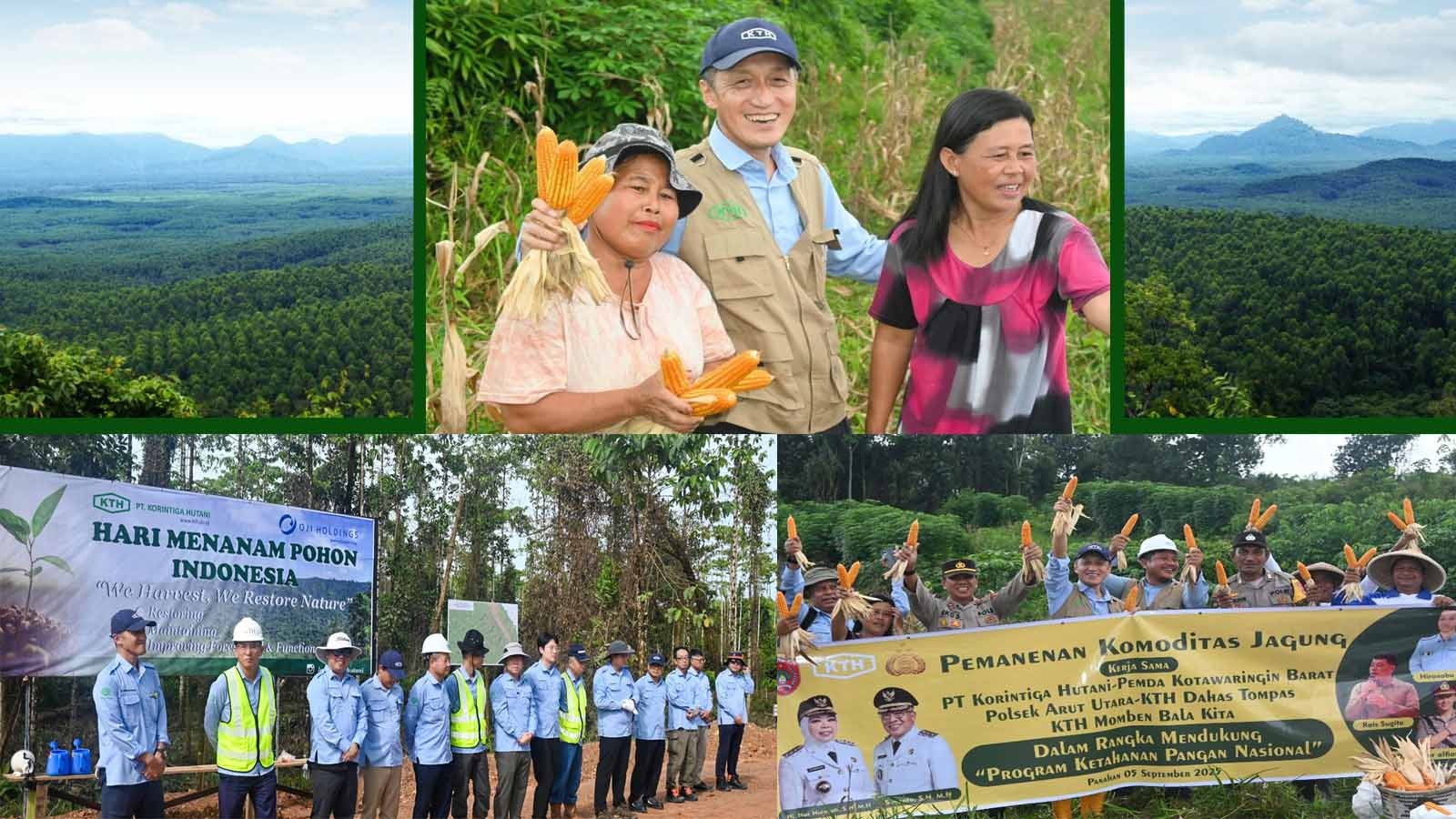Photo Caption: PT Korintiga Hutani President Director, Hironobu Abe (top), distributes the first harvest of hybrid corn and participates in a tree-planting ceremony. (Korindo Public Relations)