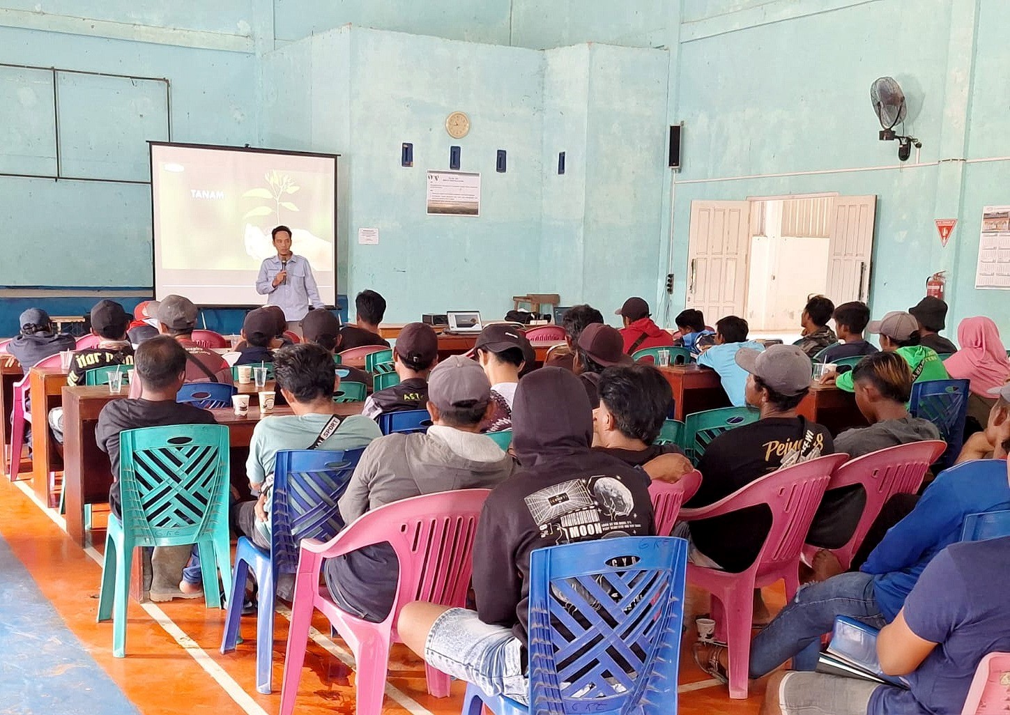 Photo: Korintiga Hutani employees at the briefing on safe pesticide handling at Teluk Makka Sports Hall, Pellita Base Camp (11/12)
